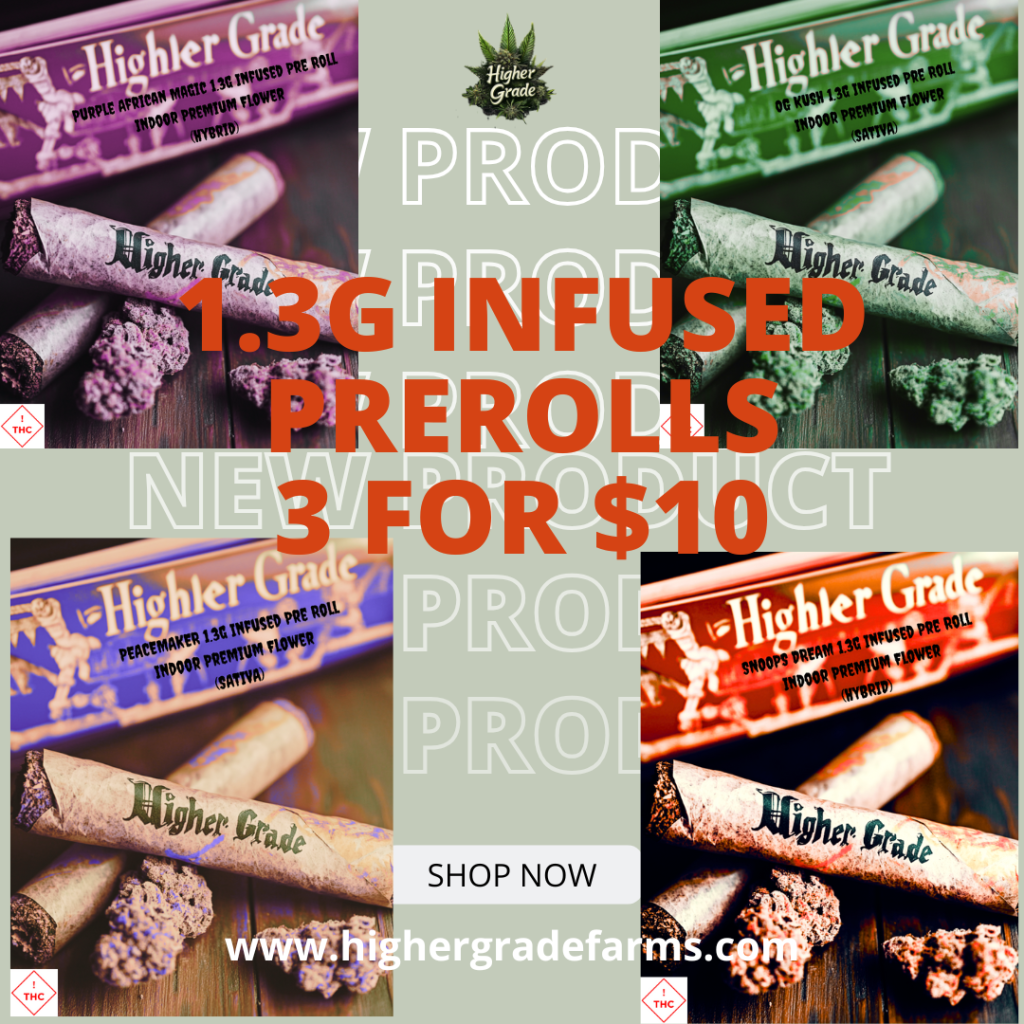 Wednesday – Make any purchase of $100 or more and get a free 1.5 gram infused preroll.